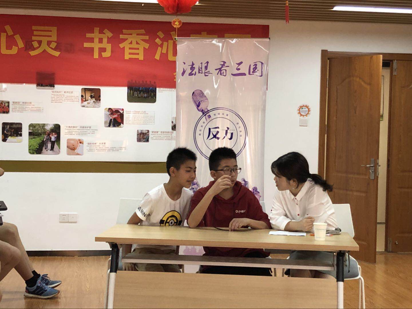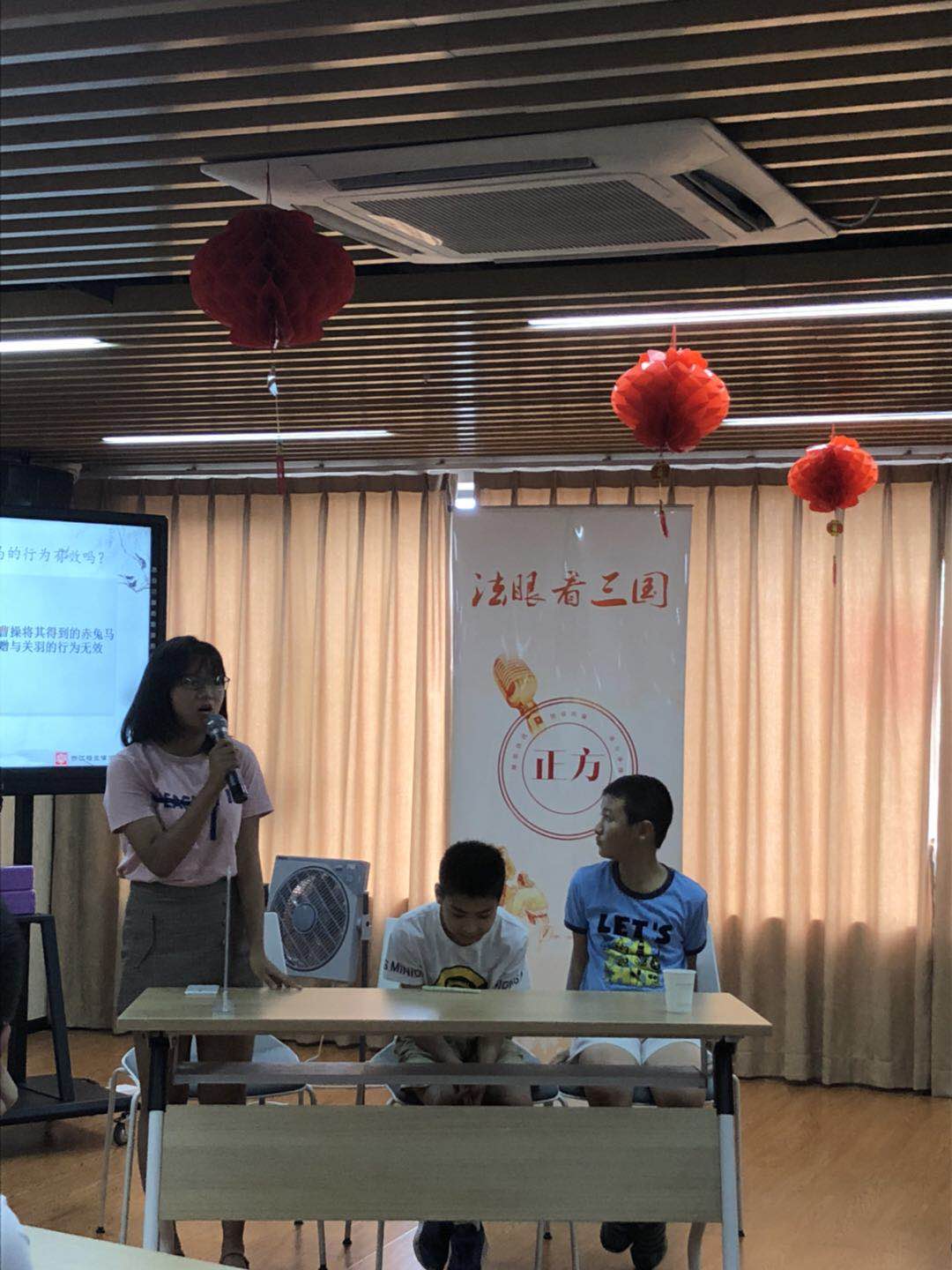 2018年8月1日,为切实开展青少年法治宣传教育活动,引导广大青少年阅读名著及树立法律意识,笕桥司法所、笕桥街道关工委、金色黎明社区、浙江楷立律师事务所李晟律师团队于金色黎明社区党群活动中心二楼联合举办了主题为“法眼看三国,观点对对碰”的青少年暑期社会实践活动,浙江楷立律师事务所李晟律师团队成员金泓伊律师、周雪、方勇琴、陈丽佳围绕四大名著之一《三国演义》中赤兔马的流转,通过学生辩论的形式,以不一样的角度来向同学们解读名著。