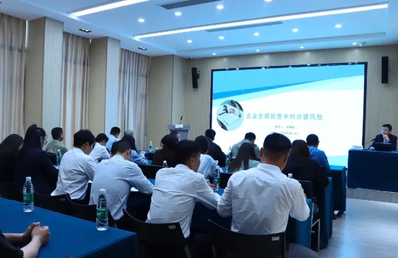 讲座中,金律师注重理论结合实际,紧贴日常工作所需,以法律条款、专业知识和案例为引,从新《公司法》修订内容解读、合同管理、订立、审查的常见问题及企业用工法律风险等角度,对企业合规经营中的法律风险进行了全面阐述和深入讲解,有针对性地提出了企业风险防范措施与切实可行的法律建议,为企业推进合规管理、完善法律风险防范措施提供了思路。